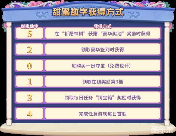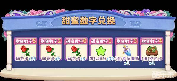活动规则:每种“甜蜜数字的嘉奖”只能领取一次,领取之后消耗对应数字;