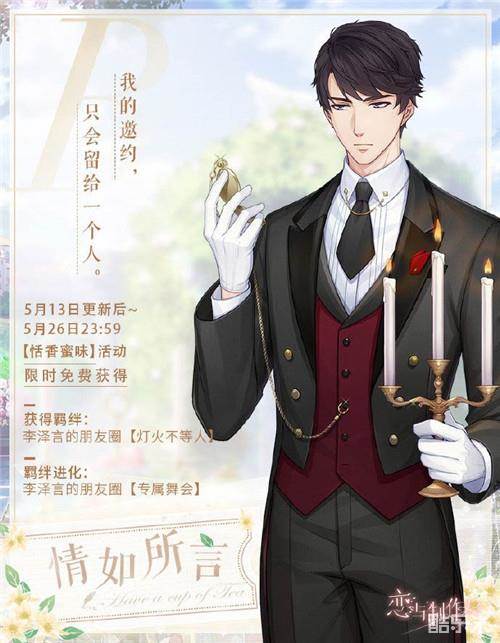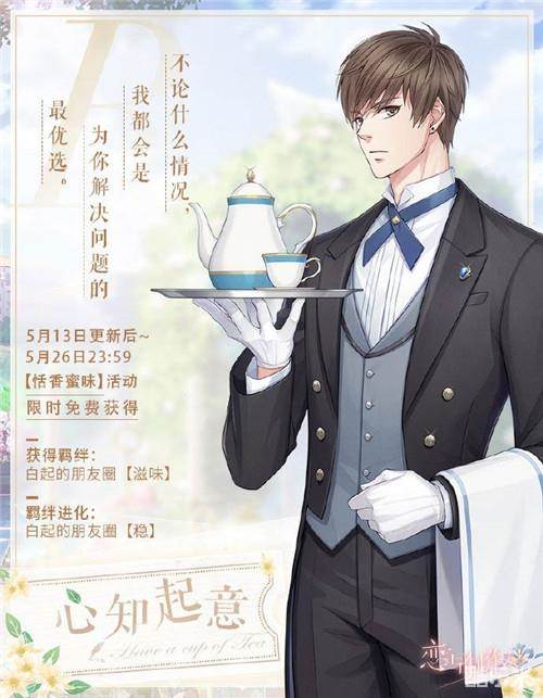 超人气乙女游戏《恋与制作人》于今(13)日心动开启「恬香蜜味」主题活动,520主题纪念R羁绊免费获取,收下他无微不至的甜蜜招待。公司合作新项目和全新专家创业玩法上线,完成任务可领取他的全新ER羁绊。还有浓情满屋2020情人节SSR羁绊复刻、活动主题BGM上架和生日祝福剧情更新等多重活动,期待制作人体验探索。