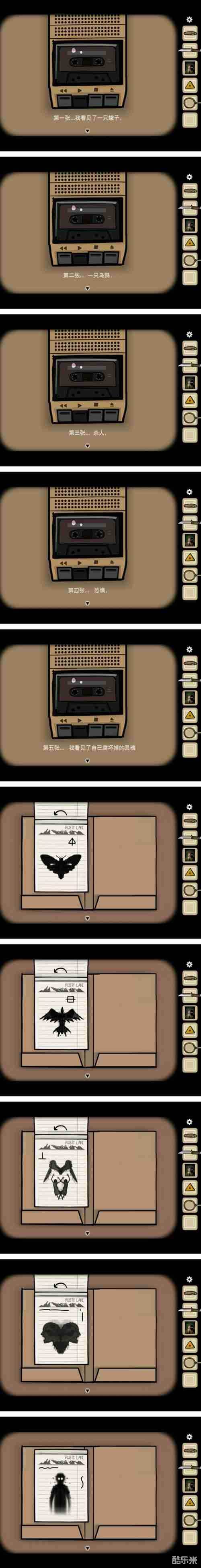 输入密码后得到灯泡,装在乌鸦旁的机器上,点旋钮会跳出具有爱、恐惧、困惑相关的纸条,抓住纸条塞进对应的槽里,直到出现心理病历和过去的大脑。