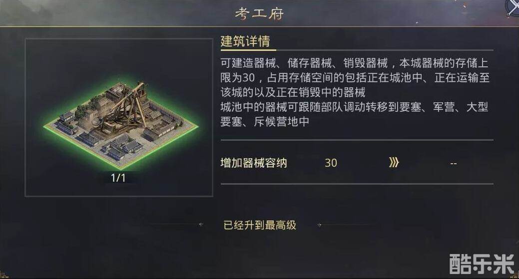 玩家想要获得霹雳在攻城时使用,需要通过考工府这一建筑。考工府专为玩家打造各种特殊器械,霹雳也不例外。
