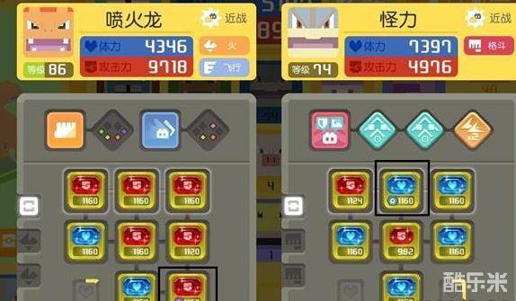 附魔属性结晶可以把方石的数值提升为1.1倍,如下图水箭龟的已附魔水系方石,数值为1232,此方石未附魔前的数值为1120,但必须携带此方石的宝可梦本身属性为水系才能获得此提升效果,如下图所示的喷火龙与怪力,虽然已经附魔上毒属性结晶和钢属性结晶,但因为宝可梦本身没有毒、钢属性,因此这两个方石并不触发加成效果。