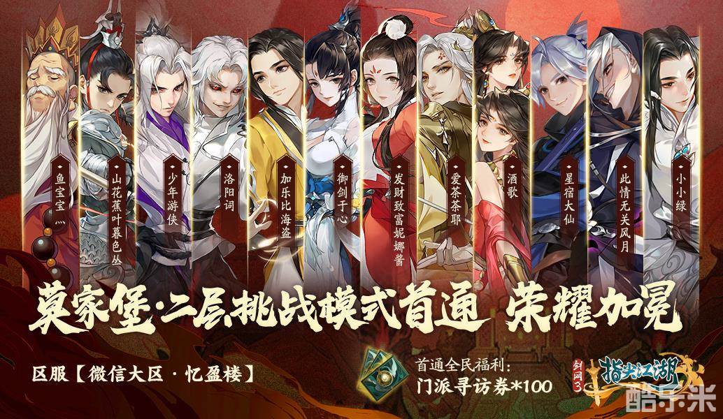超高难度?莫家堡·二层?拿下!为庆贺莫家堡·二层挑战模式首通,我们将在5月14日维护后,为全区全服赠送【门派寻访券*100】!首通团队每人将获得专属荣誉头像框【血舆吟】、可交互背部挂件【血影天宇舞姬】、GSC莫雨穆玄英手办、《乘梦江湖》音乐专辑等丰厚奖励!