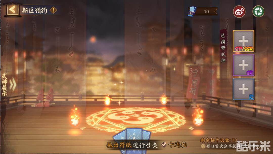 集结期间,预约抽卡SSR概率提升为3%!首次十连必得SP/SSR!阴阳师们每天还可免费获得十连召唤机会,并可从已召唤的式神中选择携带3位进入新区。
