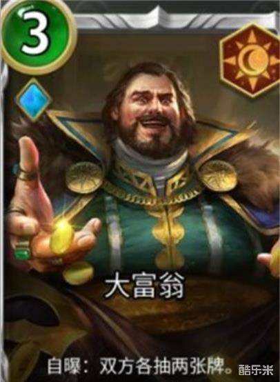大富翁:是中立补牌神卡,自身3契约值不易被对手翻开,其妙用在于当对手满牌而我方伤亡惨重时,翻开即可使我方抽两张牌缩小和对手的卡差,瞬间逆转我方的场面劣势,是中立翻盘神卡!