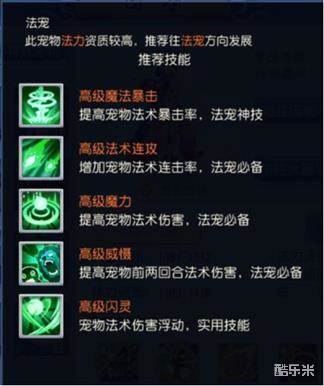 准确地说,法宠的技能标配仍旧是法术连击、法术暴击、魔力、涅槃。由于法宠比攻宠更加吃防御和气血,变异4技能宝宝在后期的法宠中依旧占据了主流。如果你看到的4技能法宠不是这个搭配的,并且也无法判断这只宠物强弱,注意,在打书之前请仔细询问帮派里的老司机。