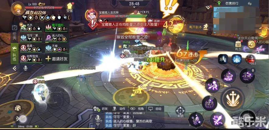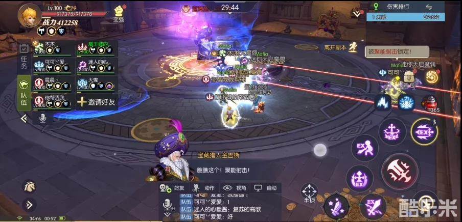 【技能-能量倾泻】:boss释放能量波,造成高额伤害,需要集合减伤加血。