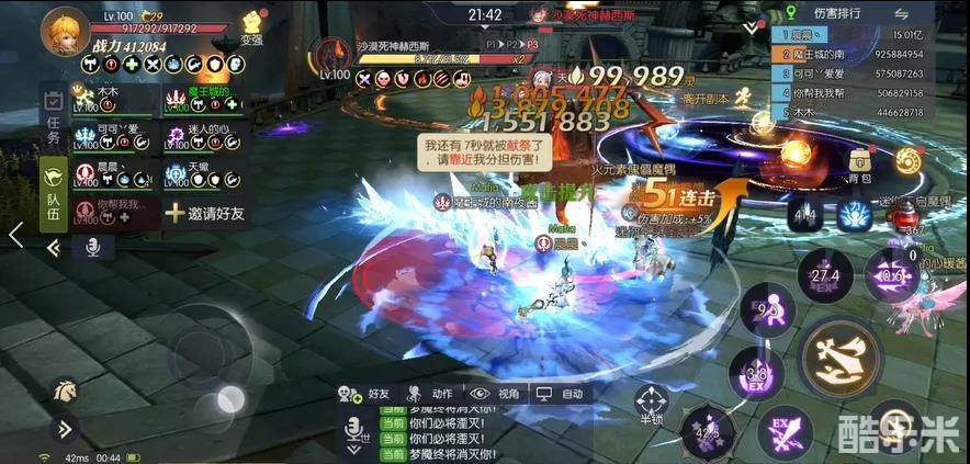 【怒气技-魂能填充】:死神点名两个玩家,倒计时结束后抽取玩家灵魂能量,需要远离boss,否则会发生爆炸。被夺走的心能会在场上游走,需要打掉。