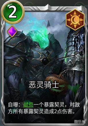 感染者和恶灵骑士是翻盘利器,对面暴露卡牌越多收益越大,用恶灵骑士献祭感染者可使对面瞬间减少3点契约值,就目前已有卡牌来说,4契约值就算最高了(卡牌技能特殊有效的契约值上限是3点),减少3契约值后,非死即伤,也不存在能翻开我方卡牌的能力了,基本是成型牌组必带的两兄弟。