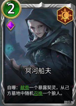 黑袍萨满和冥河船夫可增加身牌组的容错率,召唤出的狼人也可配合其他献祭卡牌打出一套组合拳(配合种狼更有奇效),由于现在牌组中可放入两张同名卡牌,就可制造出更多的狼人,当己方场上一大半都是狼人的时候,估计对方只有默默地点投降了。