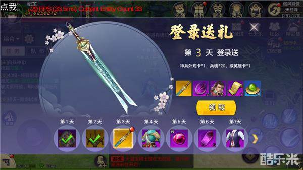 神兵外观卡在登陆第三天,由系统送出,点击使用即开启神兵系统。