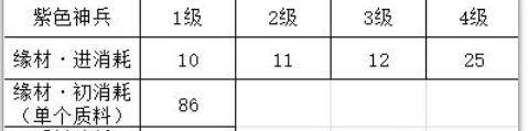 紫色神兵消耗:至于提升神兵等级,因为花费的缘材·进比较多,而免费产出的渠道又极少,所以一般玩家慢慢攒材料养成即可,升一下十多点功力,无需太着急。因此也没必要为了伙伴共鸣选择心意双环,因为想升到8级还是比较困难。