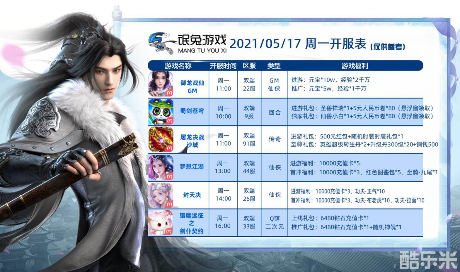 氓兔游戏盒子官网-5月17号开服表《仙域轮回》下周新游预告