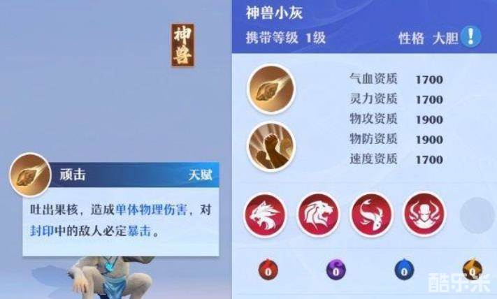 对于游戏前期来说,神兽的资质无疑是非常顶级的,到了中后期,也算得上中上水平的资质。神兽小灰的1技能,可以用来培养成封系职业的单秒宠。其2技能,也可以适合大多说职业培养成群攻宠。这里只讲专属与封系职业在pvp中用于单点秒杀的神兽小灰技能搭配推荐(仅代表个人观点,不喜勿杠)