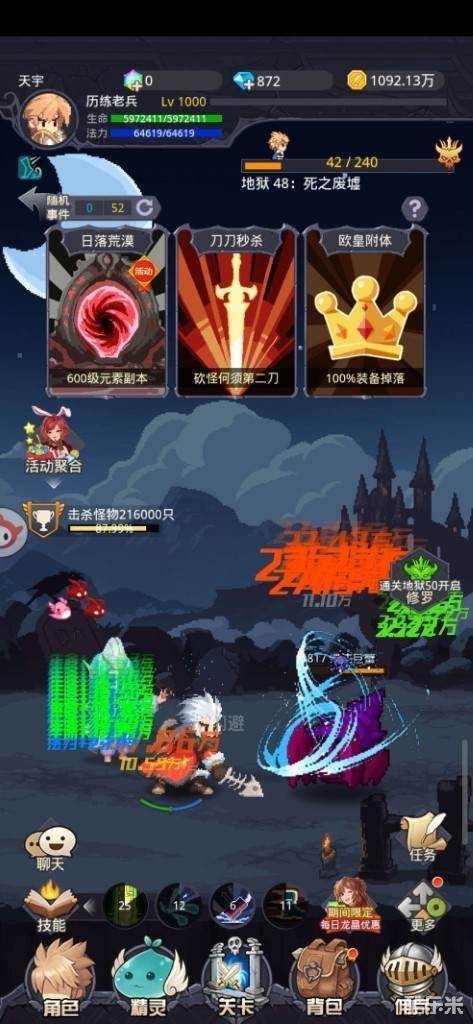 你达到了惊人的1000W 血量,在终焉寸步难行,打史莱姆打到了传说中的500亿。