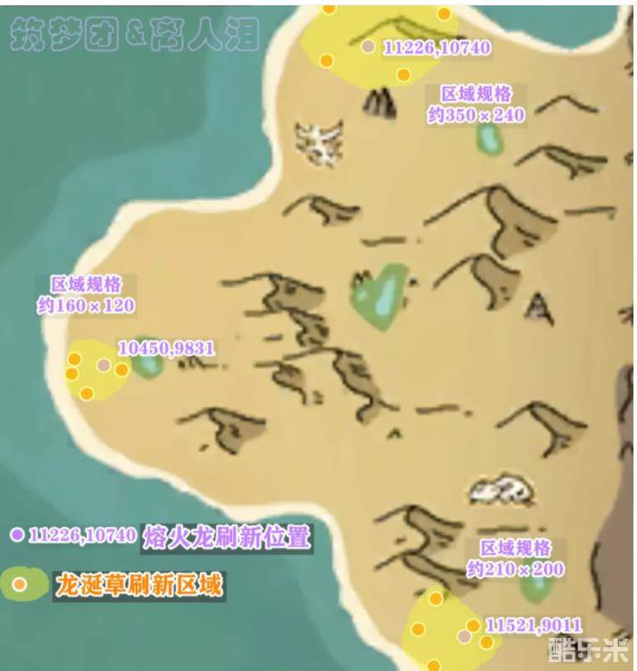 用途:制作熔火龙饲料,抓捕一只熔火龙需要81根以上龙涎草(略微波动)。刷新位置:在沙漠熔火龙三个刷新点周围,分别为上、中、下区域。刷新数量:上方区域每波刷新两个,中间区域两个,下方区域一个;平均每个群岛每天共刷新10个龙草。