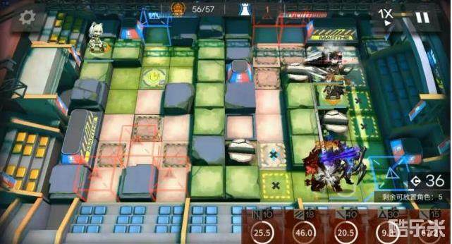 凯尔希3技能处理三波盾兵,第一波盾兵后黑放凯尔希右边向下,20杀看到中间红门箭头,上42