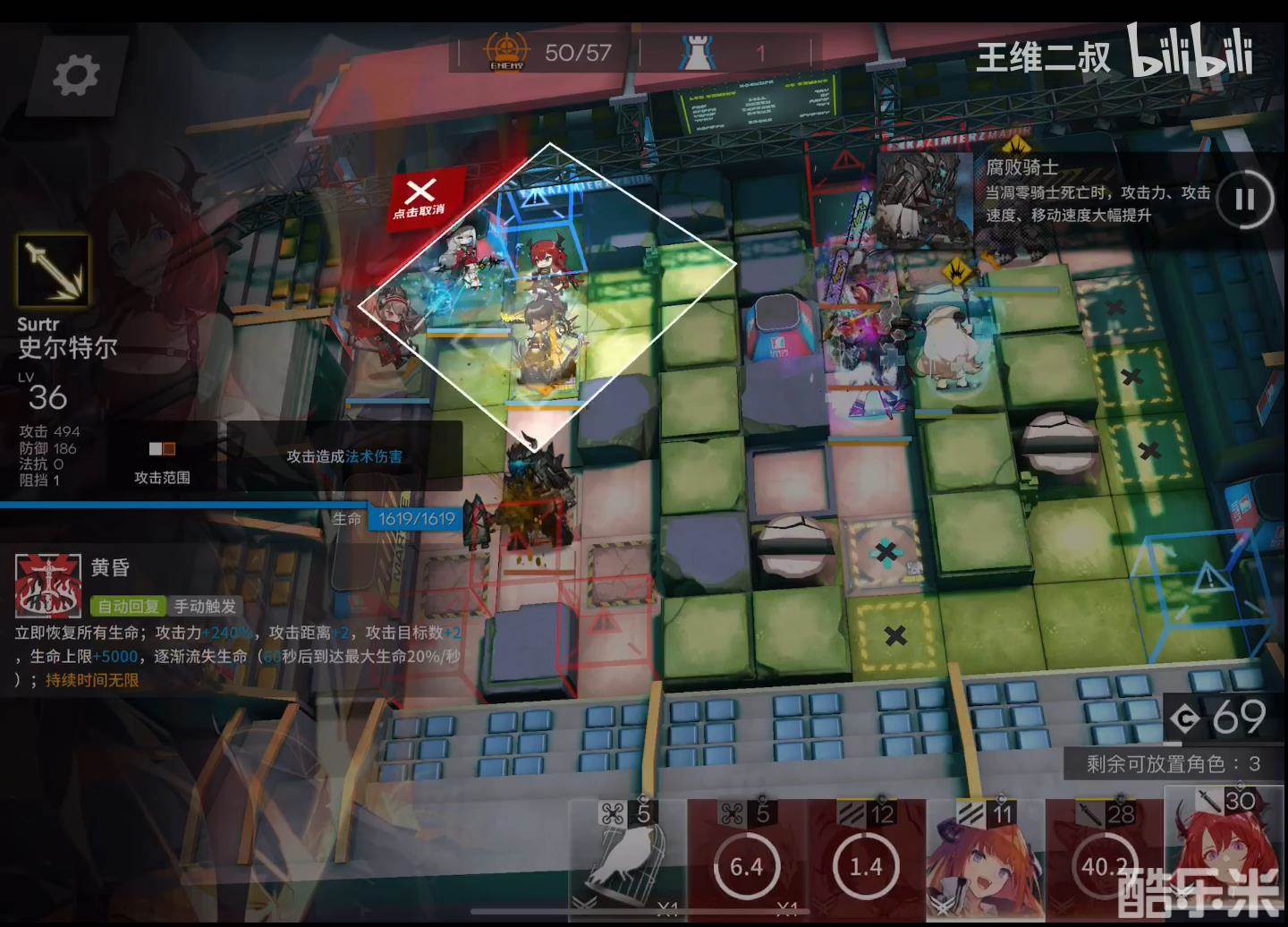 左侧下风笛和桃子把骑士挡在42攻击范围内,这里但凡棘刺/42比我练度高一点都不用拖尸(