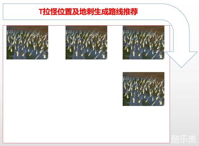 万魂金刺:冶儿在30%血量以下会释放万魂金刺,万魂金刺不会消失并造成大量持续伤害。建议抗伤职业先把冶儿拉到角落,然后按照顺序拉动BOSS(可参考下图),让金刺始终处于地图边缘。
