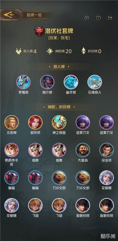 如你所见,这套牌并没有民牌。咱们打的是高数值站场,不需要靠民找狼藏狼。