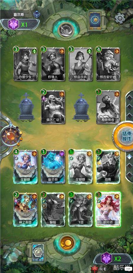 在有御风师在场的情况下可以试着翻几个蝙蝠蝴蝶飞鼠出来为下回合做铺垫了,有猎鹰在场的话不要怂,直接翻!配合飞鼠,对面不夜刀猎鹰我有buff,对面夜刀猎鹰我还有个5血飞鼠,巴适~