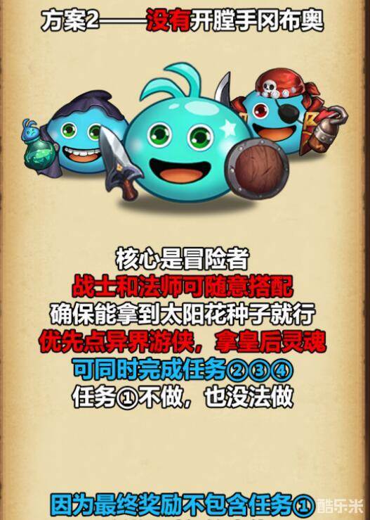 任务①限定了角色,如果没有,可以用冒险者+斯巴达+蜘蛛女王,或者干脆用捡垃圾组合,去刷一趟低语之森,②③④任务同时做,只进图1次也就结束活动了