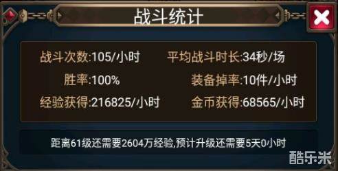 点击战斗页面的战斗统计,就可以看到在当前地图中获得的经验、金币、胜率等具体数值。