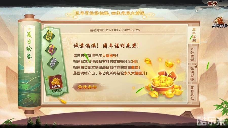 从年初开始进行的四季绘卷·十周年系列回馈,18日开启夏日绘卷第三篇章,根据活动页面要求参与活动可点亮“回馈”令牌。同时点亮绘卷中的三个令牌可领取夏日绘卷最终奖励。
