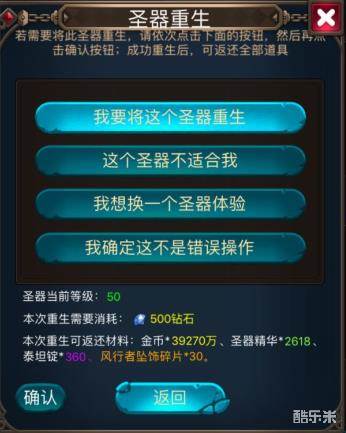 想换圣器的话可以可以重新进行升级,大大减少了圣器的升级成本。