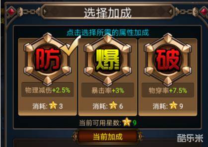 有玩家可能会问我们如何才能打死高血量boss呢,其实只要大家合理的利用通关条件,就可以轻松获得最大收益。我们都知道在卡拉赞中每层都会有相应的属性加成,需要消耗相应星数来换取,属性主要可以分为暴击伤害、护穿率、命中率、物穿率等进攻类别的BUFF,和/魔法/护甲减伤、护甲率、闪避率、生命、抗暴率等防护类BUFF。想要打死高血量的boss推荐大家靠暴击,而暴击可以优先考虑暴击伤害,其次是暴击率。当然光有伤害还不够,还要有穿透。有了穿透攻击效果可事半功倍。