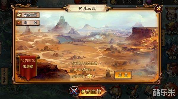 《武林血战》是除通关副本外的又另一个闯关活动哦,通过游戏主界面里选择《武林血战》,然后进入闯关的战斗准备,每日挑战次数3次,不过VIP等级越高购买的额外次数就越多,VIP升起来,战斗起来吧!