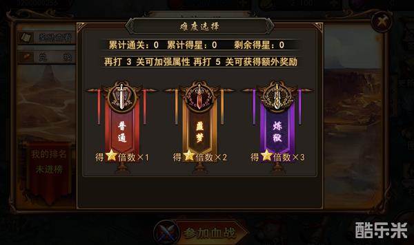闯关会有难度的选择,这个要根据自身英雄属性来选择啦,选择“噩梦”难度一般稳稳妥妥的,会获得2倍的勋章奖励。如果喜欢挑战自我的玩家也可以大胆选择可以得到3倍奖励的“炼狱”难度通关哈,问你敢不敢!
