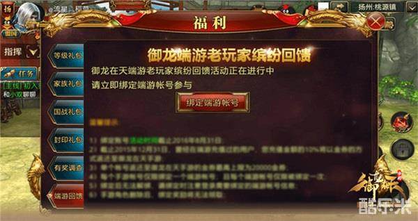 首先,游戏对《御龙在天》端游的老玩家进行了好礼放送,即玩家们在端游中的消费都将以金券的形式返还至手游中,绑定账号即可获得!其次,玩家在游戏中达到指定等级后,还可免费领取现金红包和等级红包,以及获得抽取海量Q币的机会。