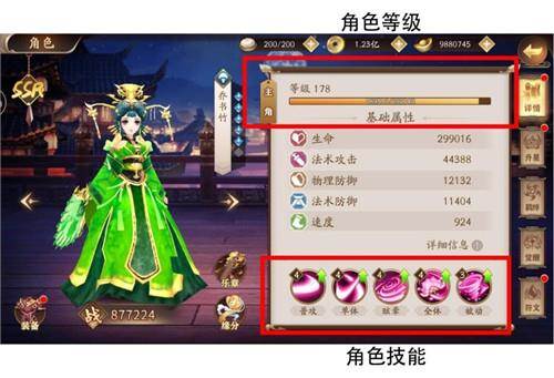 在角色详情界面中,通过消耗经验书能够提升除主角外的其他角色的等级,主角的等级则是通过进行主线任务进行提升的。