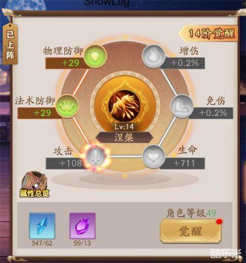 当角色到达相应的等级后,可以通过觉醒提升战斗力。每一阶需要觉醒六次,分别增加物理防御、法术防御、攻击、生命、免伤、增伤六个属性。