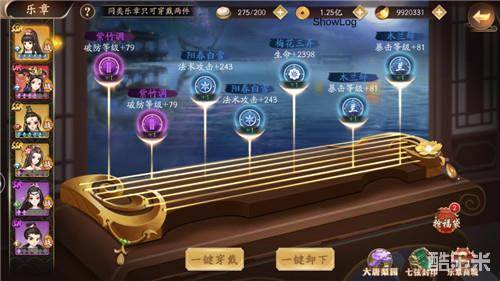 装备乐章同样可以提升角色的战斗力。只有上阵角色可装备乐章,每个角色都可装备6件乐章,乐章共有11种类型,不同类型的乐章提升的属性不同,每个角色不可佩戴两件以上的同类型乐章。当穿戴指定数量的乐章后,会激活七弦封印中的套装属性,可以通过吞噬其他乐章来升级乐章。