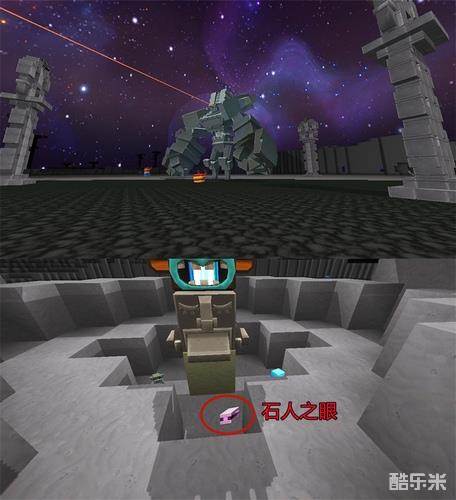 来到萌眼星,根据指示找到了萌眼石像,而智慧石碑也指示说要在石像四周放置蓝钻、孔雀、星铜、紫荧石块召唤魔法之眼。