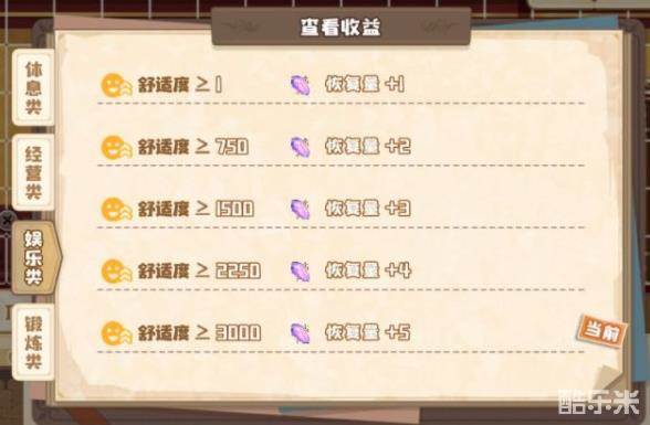 后宅扩建完成之后最多可以建造11个精华房间,舒适度达到3000的时候精华的恢复量达到最大,所以我们主要的目标就是先把后宅的舒适度提升至3000,总共有四个精华房间的模板可供选择。