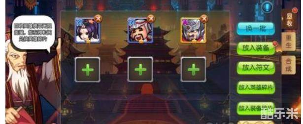 1.点击“+”进入选择界面,每次最多可选择6个武将、装备、装备碎片或武将碎片进行回收。