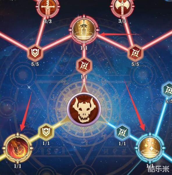 在玩家选择天赋的初期,会发现天赋的初始路线是被三种主动效果型技能所占据的,也就是说玩家想要学习后续的天赋,这三个技能是必须都学的,它们分别是天罚,陨石以及灵蝶。其中陨石是比较重要的,即使三个天赋都必须点出,玩家也需要先点陨石天赋。