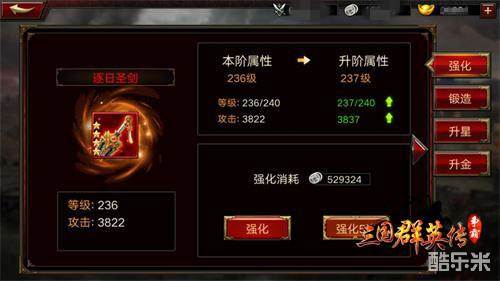 之前游戏推出了“武将升金”玩法,获得了玩家一致好评,现在玩法进一步升级,推出“装备升金”玩法,当主公等级达到105级且红色装备升星达到4星时,运用“装备升金”能够让红色装备直接进阶为金色装备,让你战斗力大增。