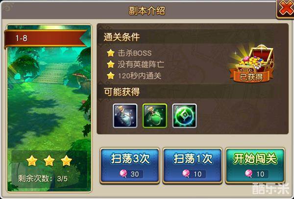 关卡基础奖励包括经验值和金币,部分关卡还有额外的机会获得英雄碎片。 关卡可重复挑战,对应关卡奖励也可重复获得。