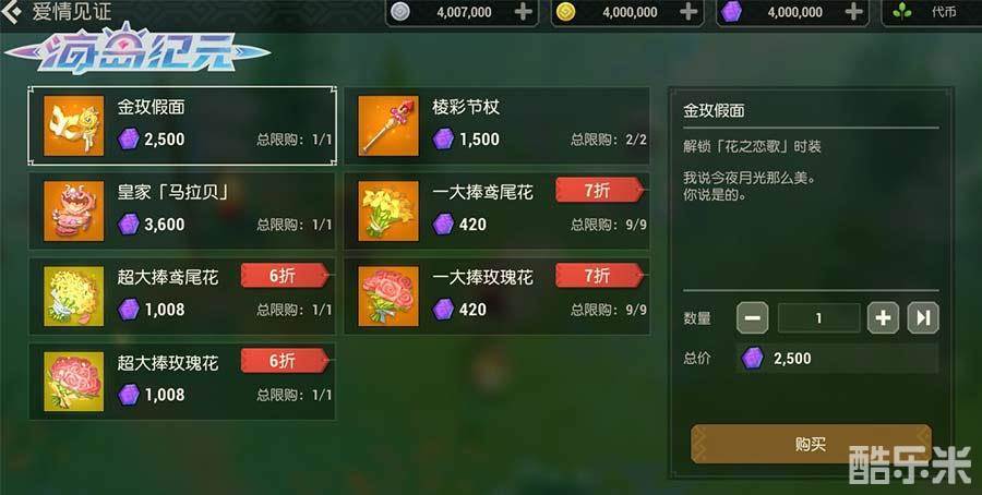 著名的海岛神仙眷侣——好先生凯奇坎贝尔和他的妻子劳拉来了,一起去听听别人的爱情故事吧。单人完成「以爱之名」剧情任务,就有机会获得玫瑰花和元素熔剂。在活动期间,前往「爱情见证」购买鸢尾花或者玫瑰花送给对方,表达你的爱意吧!购买更享超值折扣,赠送额外好感度。