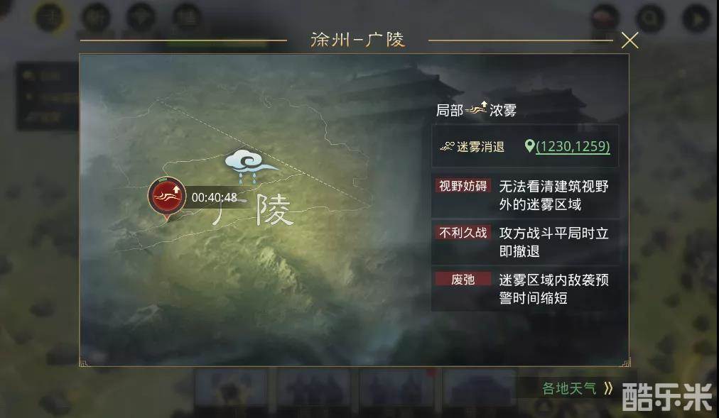 在游戏中,大风天气能引发沙尘暴或是风灾,而倘若风力小于1级,则有可能触发浓雾状态,当天时条件有了诸多变化,如何在瞬息万变的战场中把握住稍纵即逝的战机,不管是无惧风雨继续强攻,还是借天时之险退避三舍,以期得绝地反击,各位玩家可尽情发挥战争智慧,趋利避害。