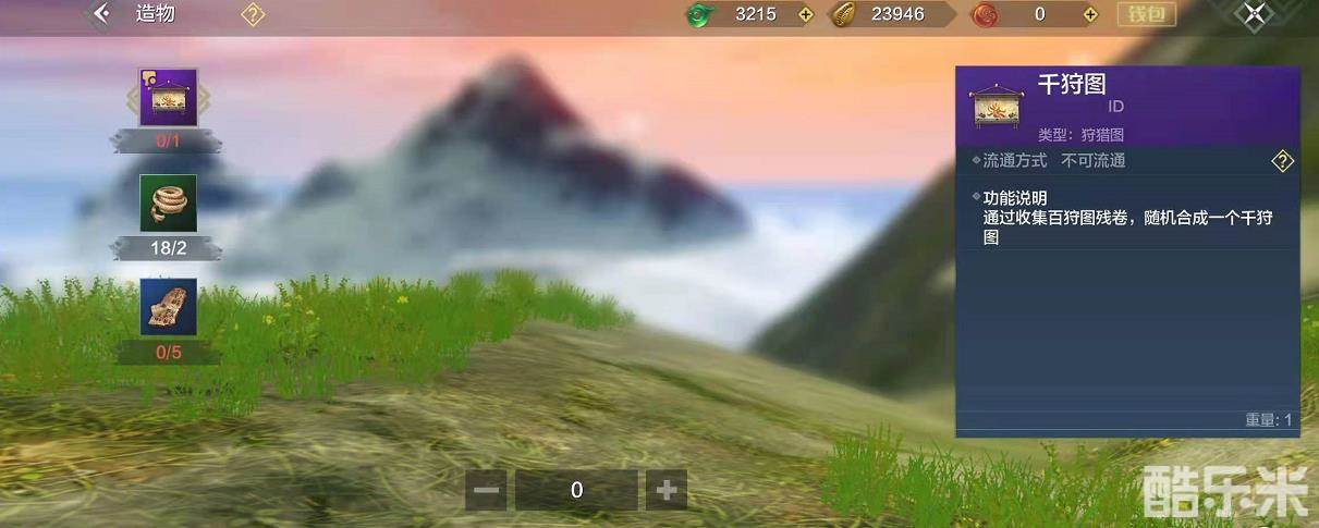 游戏中千狩图图样可以通过活跃度奖励或者是其它活动任务中获得、麻纬可以通过在织布机中使用露水*5+纤维*10制作、百狩图残卷可以通过分解百狩图获得。