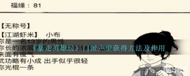 《暴走英雄坛》门派声望获得方法及作用