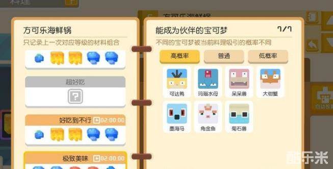 宝可梦大探险胖丁食谱一览