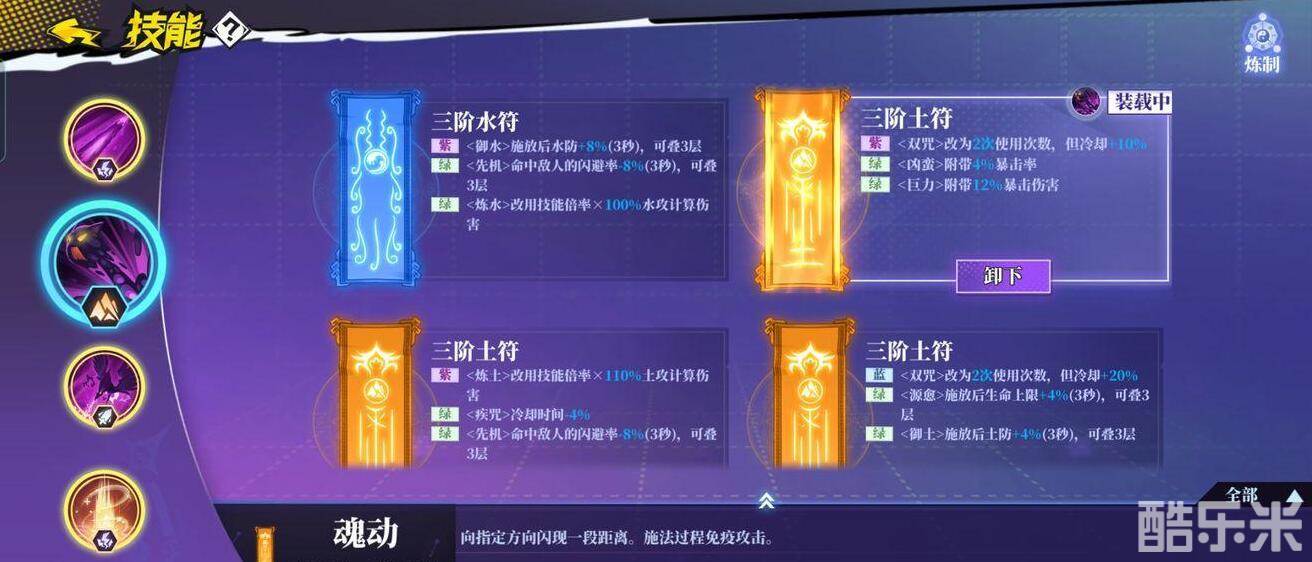 符咒上使用能提升防御属性的即可。主要目的是给角色更强的生存能力,对于属性的限制要求没有残影严格,根据效果选择即可。