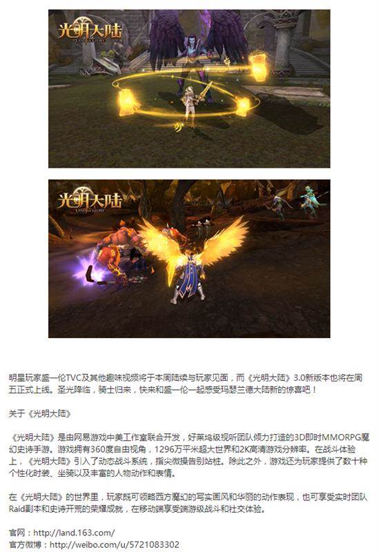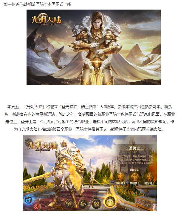 网易3D魔幻史诗手游《光明大陆》将于本周五迎来全新版本——圣光降临,骑士归来。新版本上线在即,明星玩家盛一伦更是实力出镜,助力《光明大陆》3.0新版的到来。