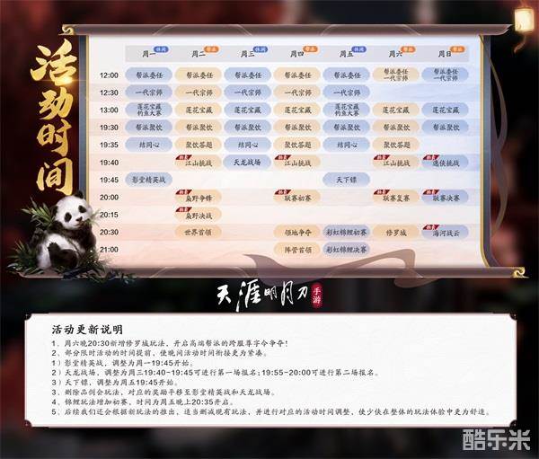 为在晚间活动期间减少冗长的等待时间,活动时间也进行了优化调整!部分限时活动的时间提前,品剑会玩法告一段落,少侠记得提前查看活动时间调整情况,避免错过活动奖励。未来还将在更多新玩法推出后优化现有玩法及活动时间,为少侠带来更为舒适的游戏体验。