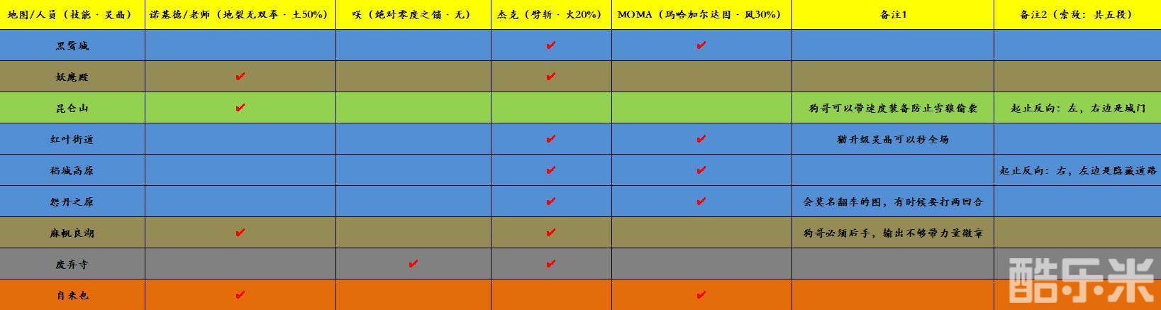 因为输出手法是依靠技能,因此角色的站位上,主输出手要站三号位和四号位,技能只让这两个位置使用,提高效率。在技能的选择上根据图表选择即可。
